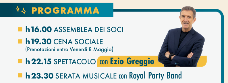 Alle ore 22:15, nella stessa tensostruttura che ha ospitato l’Assemblea, salirà sul palco Ezio Greggio con uno spettacolo capace di unire ironia, leggerezza e grande energia.