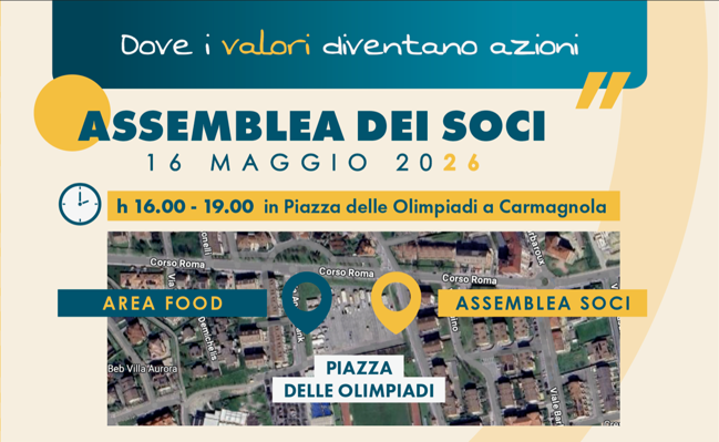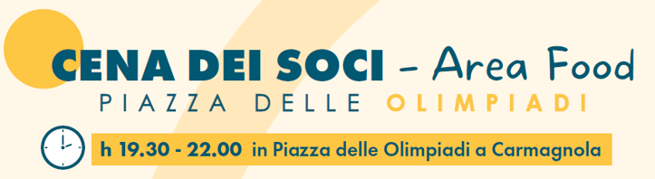 Al termine dell’Assemblea, i partecipanti saranno accolti in un’area dedicata alla cena, pensata per valorizzare il territorio anche attraverso il gusto. La cena si terrà dalle ore 19:30 in Piazza Olimpiadi a Carmagnola. Sarà l’occasione per trascorrere un momento insieme, gustando piatti che riflettono la tradizione gastronomica del nostro territorio.
